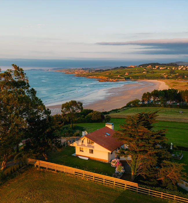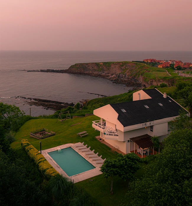 Lujosa villa con acceso privado a la playa de Oyambre y piscina ubicada en un entorno único con vistas al mar Cantábrico y a los Picos de Europa.