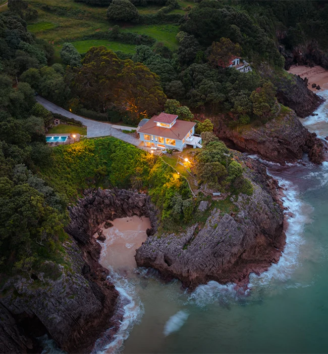 En Pechón, una de las aldeas más privilegiadas de Cantabria, esta villa de lujo está justo sobre un acantilado sobre el mar Cantábrico. Encima de la Playa de Amió –considerada una de las más bonitas de la costa por su lengua de mar y aguas turquesas– El Acantilado ofrece una experiencia única donde el mar y la montaña se unen en un mismo paisaje a través de esta vivienda.