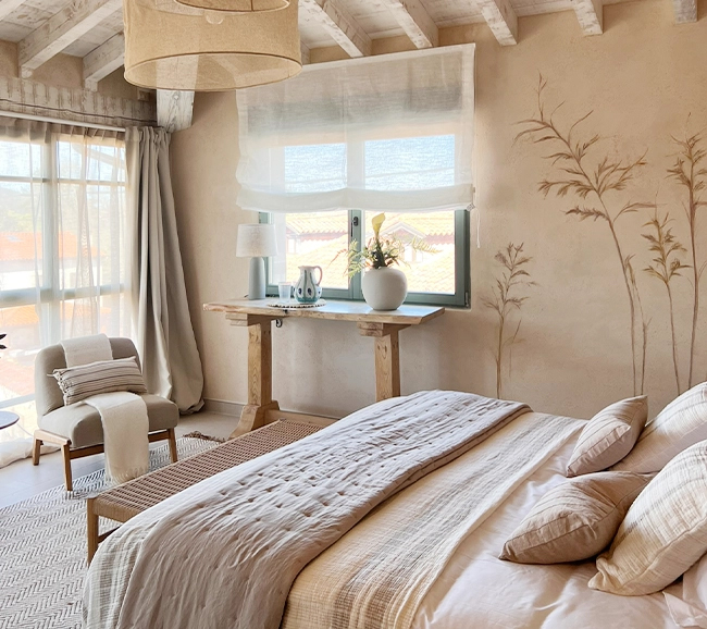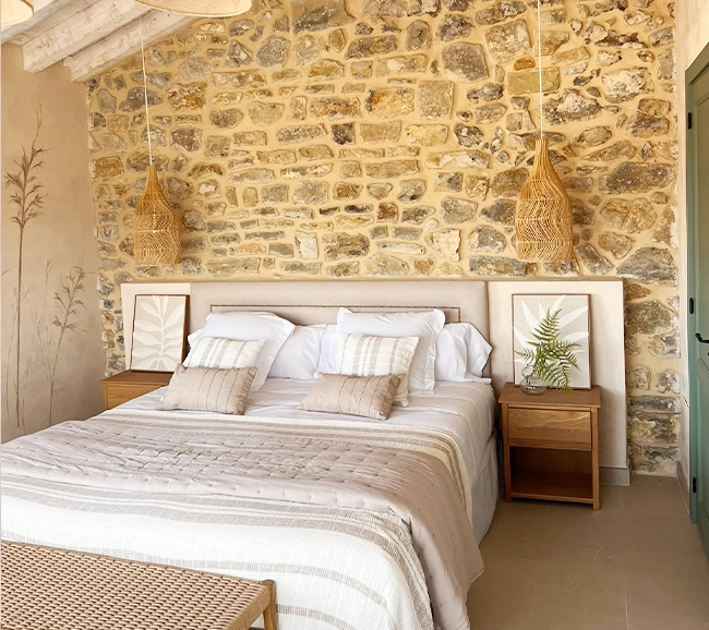 La Bendita has been restored by balancing its century-old essence with a contemporary atmosphere. The presence of the original stone walls, as well as the views of the village of Caviedes, are some of the factors taken into account to shape its identity—preserving tradition while inviting light and the surrounding landscape inside. The house, which spans 650m², includes a garden and a heated indoor pool.