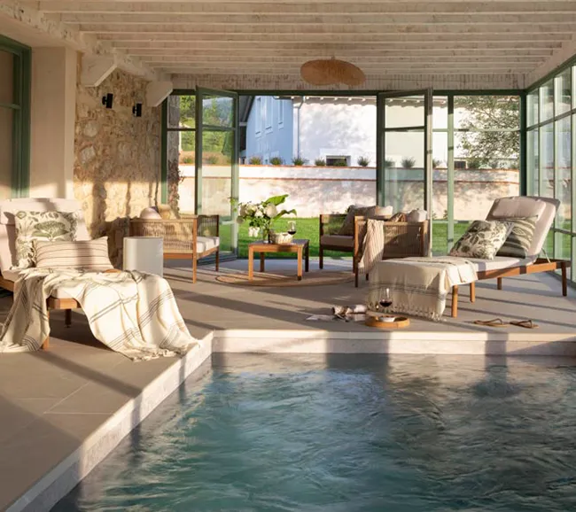 Nuestra villa cuenta con jardín privado y piscina interior climatizada.